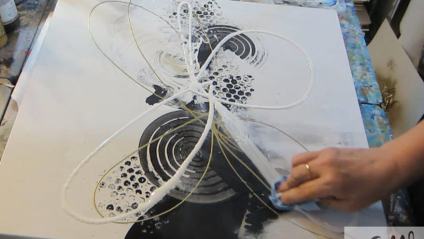 Two (2) modern abstract paintings. Learn how to use a palette knife to create the first layer of these paintings. Learn how to use tools to make marks